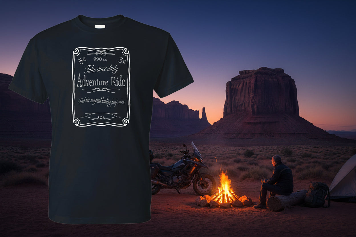 For riders who live for the open road and untamed terrain, this 100% cotton shirt captures the spirit of adventure riding. Designed for those who throttle hard, camp wild, and chase epic horizons, it's a wearable reminder that the best journeys happen when you let loose and find a legendary spot. Comfortable enough for long rides, bold enough for the campfire—because true adventurers don't do ordinary.